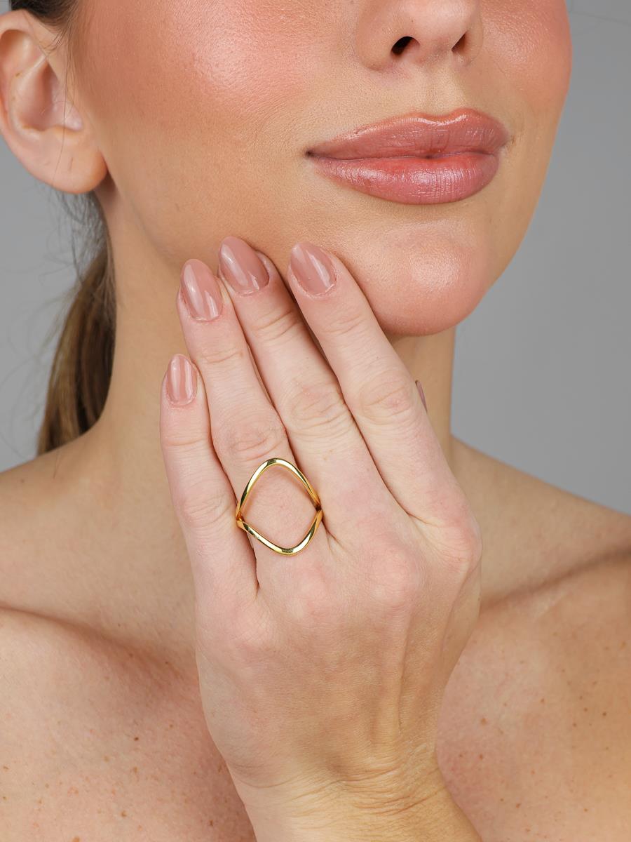 Anel Orgânico Vazado Banhado a Ouro 18 k.
