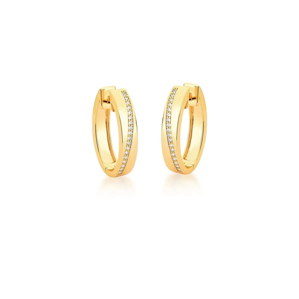 Argola oval lisa, uma fileira curva cravejada com zircônias na cor branca, com fecho de click.