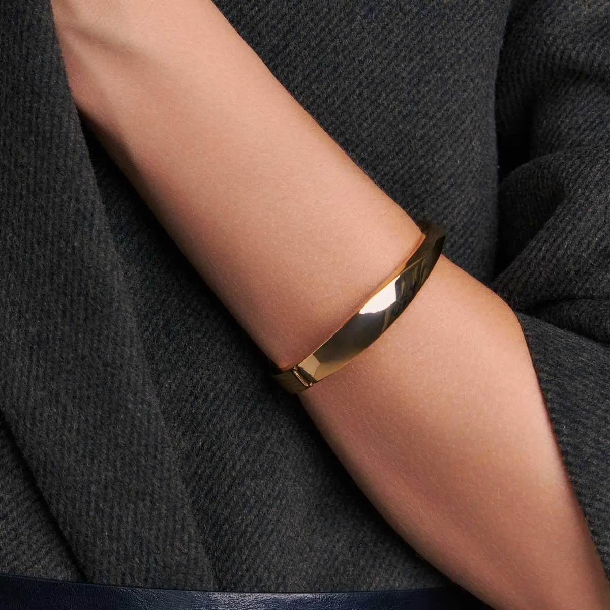 Bracelete, curvo, liso, com fecho magnético. Perfeito para um look do dia a dia, adicionando um toque de elegância.