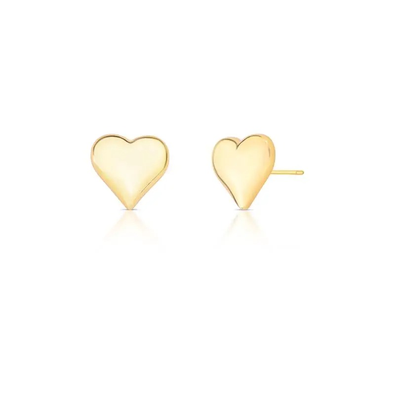 Brinco banhado a ouro com design de coração abaulado, que combina delicadeza e charme para valorizar qualquer look com um toque romântico e sofisticado
