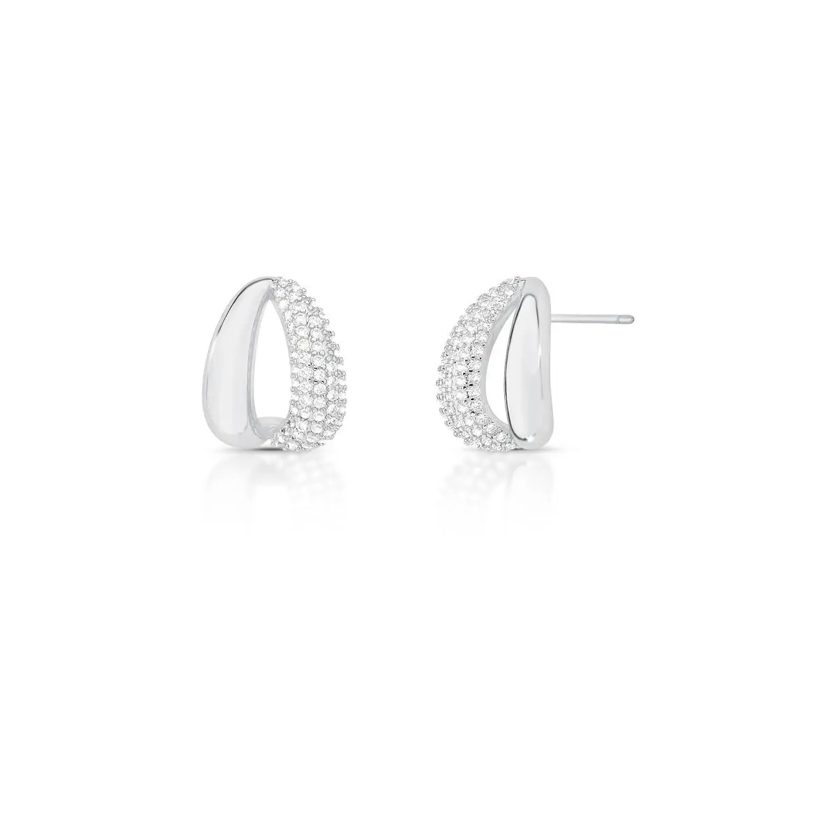Brinco com formato oval abaulado e detalhes vazados, realçado por zircônias que conferem brilho e elegância. Ideal para complementar looks sofisticados com toque delicado.