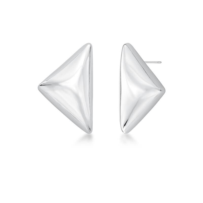 Brinco triangular banhado a ródio branco. Uma peça de destaque ao look. Elegante e imponente.