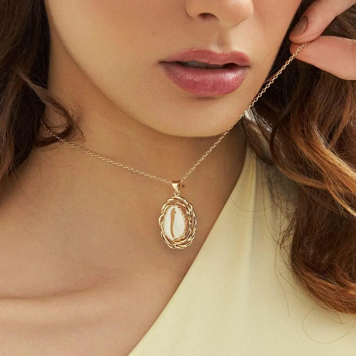 Colar banhado a ouro com pingente de concha búzio trabalhado em formato oval trançado e vazado. Uma peça delicada que traz charme e estilo inspirados na natureza para o seu visual. Ideal para quem busca acessórios elegantes e sofisticados.