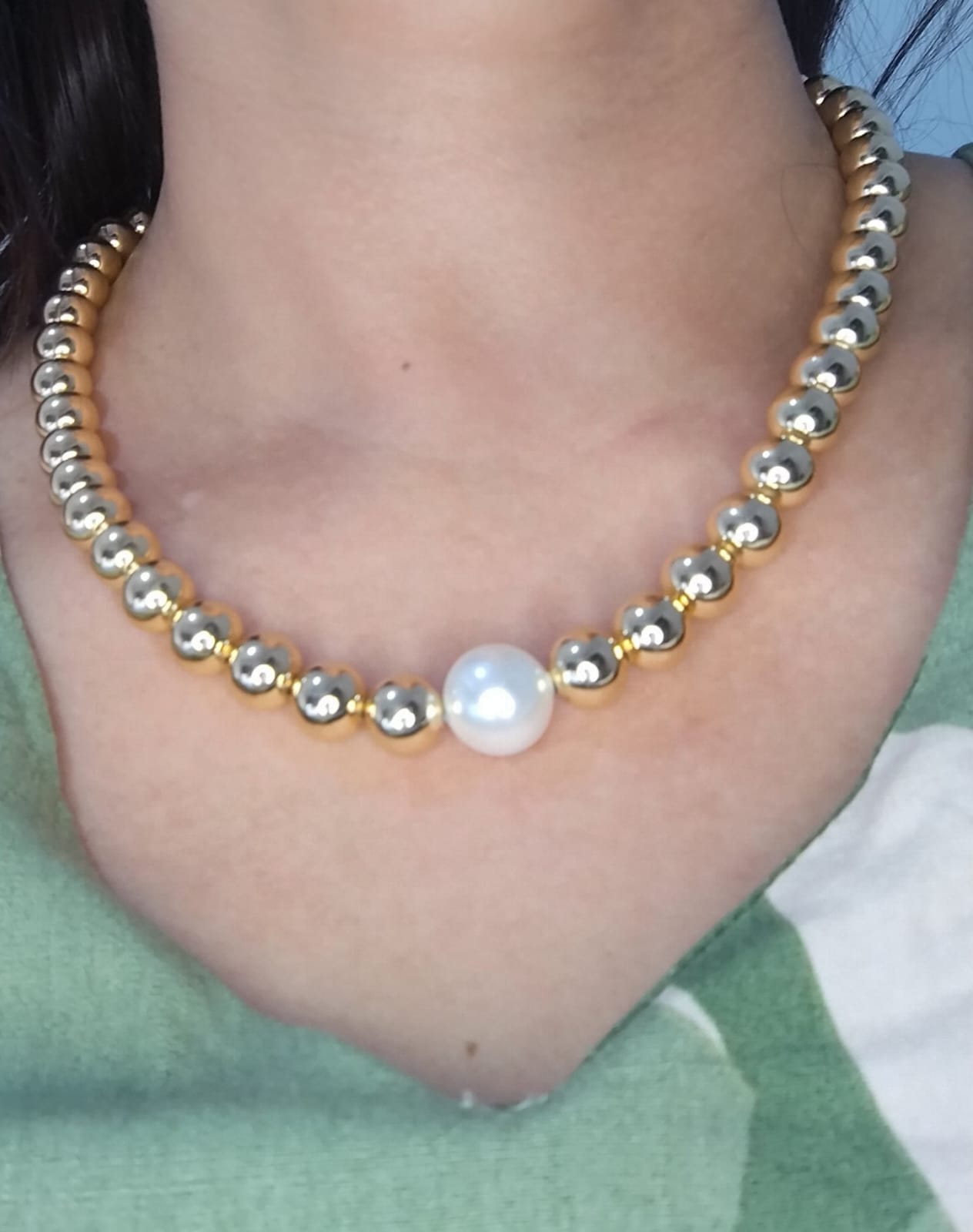 Colar banhado a ouro e pérola Shell. Elegante e moderno ao mesmo tempo.