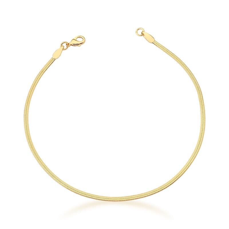 Delicadeza é o nome dessa tornozeleira banhada a ouro que trás em sua malha laminada lisa um brilho e design único.